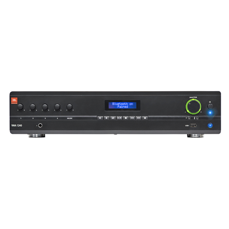 Ampli JBL VMA 1240 có 5 đầu vào với bộ tổng hợp đơn âm và 1 đầu ra với công suất đầu ra 240W. JBL VMA 1240 phát nhạc không dây qua Bluetooth hoặc cắm ổ USB vào cổng USB Type-A trên bảng điều khiển phía trước của Amply. Do đó, JBL VMA 1240 có thể phát các tệp MP3 từ thiết bị Bluetooth hoặc ổ USB bằng trình phát đa phương tiện.