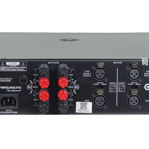 Famousound 7406 được thiết kế là dòng cục đẩy công suất 4 kênh, công suất mỗi kênh là 600W khi kéo 1 loa 8 Ohm, 700W x4CH khi dùng loa ở 4Ohm, 1550Wx2CH khi dùng loa 8 Ohm ở chế độ Bridge. Cho âm thanh mạnh mẽ, sôi động mà không lo xảy ra hiện tượng rú rít, hay ảnh hưởng đến loa karaoke.