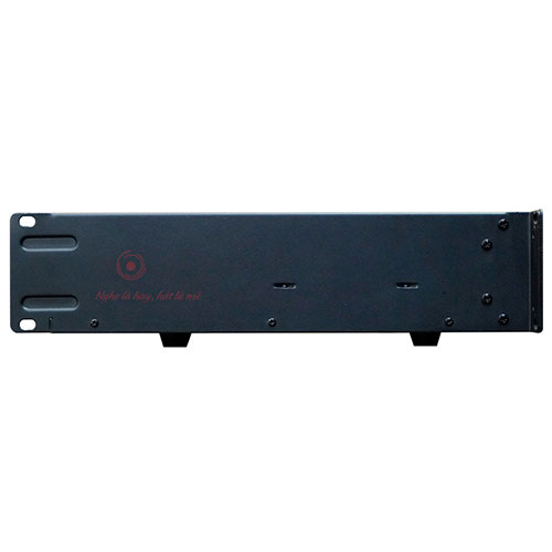 Mặt trước là hệ thống làm mát với các lỗ thông hơi được bố trí khá tinh tế, kết hợp với đó là các nút điều chỉnh 2 kênh và nút công tắc bật/ tắc nguồn ở 2 bên. Hệ thống điều chỉnh 2 kênh với hệ thống đèn tính hiệu để người dùng có thể kiểm soát mức hoạt động của thiết bị.