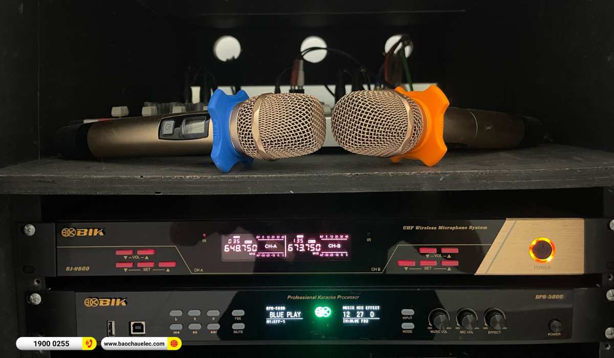 Bên cạnh hệ thống loa chính, trung tâm được trang bị vang số BIK BPR-5800 giúp xử lý âm thanh chuẩn 5.1, chống hú hiệu quả và tối ưu giọng nói để mọi phát biểu đều rõ ràng, sạch nhiễu. Đi cùng là micro không dây BIK BJ-U600 với sóng khỏe, ổn định, chống nhiễu tốt và hoạt động bền bỉ trong các buổi họp kéo dài. Tại bục phát biểu, micro cổ ngỗng ITC T-521A được lựa chọn nhờ khả năng bắt tiếng nhạy, lọc ồn tốt và thiết kế sang trọng phù hợp không gian hội trường.