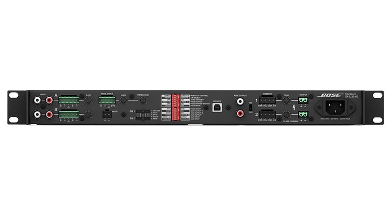 Amply Bose FreeSpace IZA 2120HZ thiết kế gồm 2 kênh riêng biệt, tích hợp mạch Class D hiệu suất cao cho công suất 120W/ CH ở trở kháng 4 ohms và 60W/ CH ở trở kháng 8ohms nên có khả năng kép được các loa trong hệ thống tái tạo âm thanh mạnh mẽ, cung cấp khoảng âm thanh rộng, phù hợp để ứng dụng vào các hệ thống âm thanh dành cho thương mại, kinh doanh.