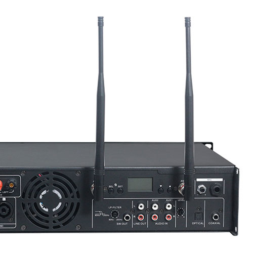 Hệ thống núm căn chỉnh, màn hình LED hiển thị, cổng kết nối âm thanh, 2 anten thu phát tín hiệu cho micro,… được bố trí khoa học, rõ ràng ở 2 mặt trước và sau nên người dùng không gặp quá nhiều khó khăn trong quá trình vận hành và kiểm soát thiết bị.