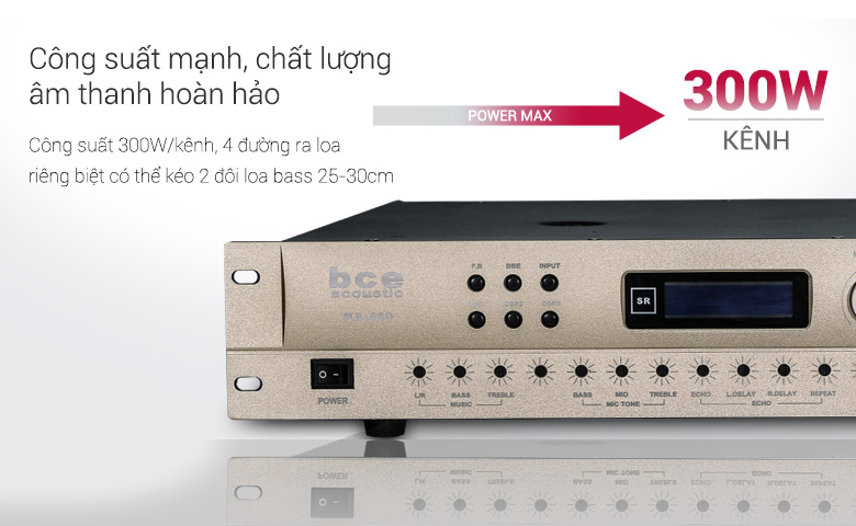 - Là dòng sản phẩm vang số có thể chỉnh nhạc hoàn hảo bằng tay, công suất 300W/kênh, 4 đường ra loa riêng biệt có thể kéo 2 đôi loa bass 25-30cm dễ dàng mang đến chất lượng âm thanh sống động cho dàn âm thanh karaoke chuyên nghiệp.