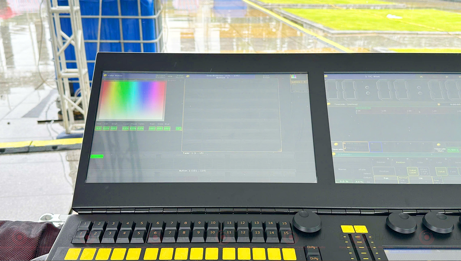 Bàn điều khiển ánh sáng cao cấp YEL C2 được tích hợp 2 màn hình cảm ứng TFT kích thước 15.4 inch, độ phân giải WXGA, hiển thị chế độ rộng giúp người dùng dễ dàng quan sát toàn bộ bố cục ánh sáng, thông số kênh, nhóm đèn và hiệu ứng đang chạy.
