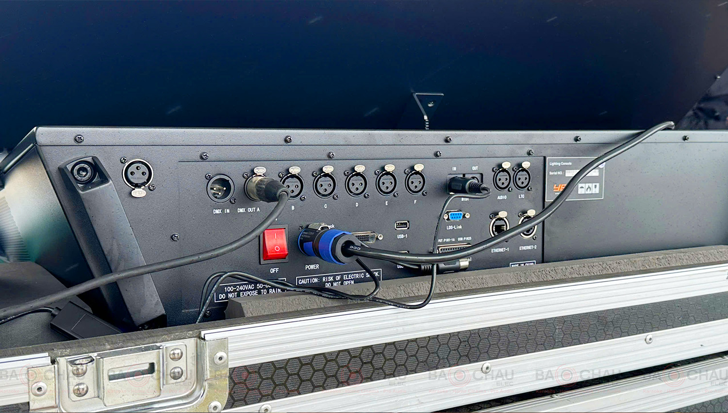 Thiết bị được trang bị 6 cổng DMX output và 1 cổng DMX input, giúp kết nối và điều khiển đồng thời nhiều thiết bị ánh sáng. Các cổng này hỗ trợ chuẩn DMX 512, tương thích với hầu hết các loại đèn và thiết bị ánh sáng sân khấu trên thị trường hiện nay. Nhờ đó, người vận hành có thể thiết lập nhiều vùng ánh sáng độc lập và kiểm soát linh hoạt từng khu vực biểu diễn.
