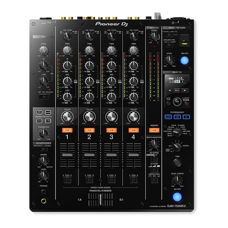 Bàn DJ Pioneer DJM-750MK2 là một mixer 4 kênh sử dụng phần mềm Rekordbox DJ và Rekordbox DVS với một danh sách các thiết lập âm thanh và hiệu ứng cần thiết giúp cho sự sáng tạo khả năng trình diễn âm thanh không bị giới hạn.