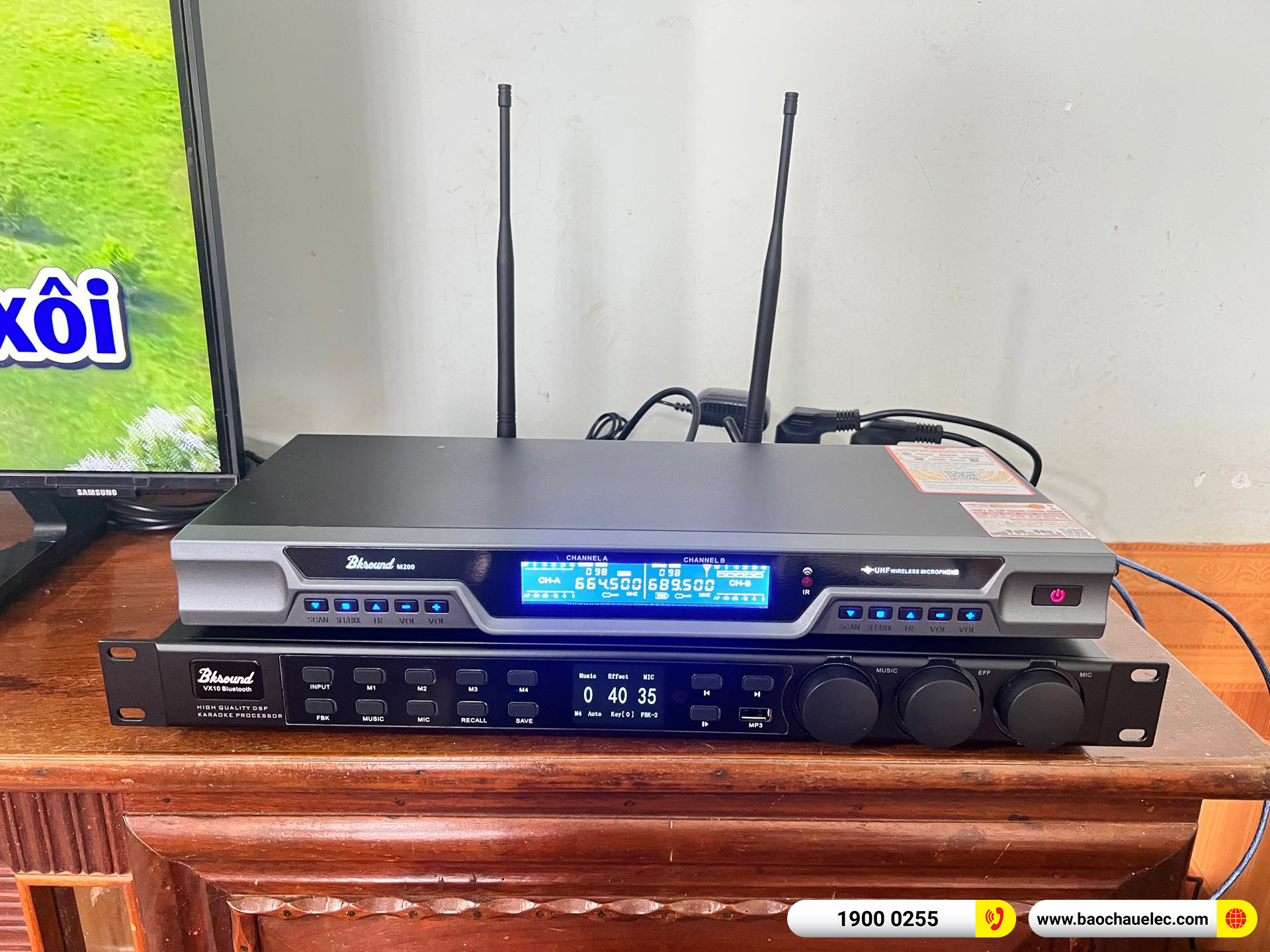 Đặc biệt, khi chọn combo này, anh Thắng còn nhận ngay vang số Bksound VX10 và micro không dây Bksound M200 làm quà tặng. Vang số VX10 giúp xử lý tín hiệu thông minh, cân chỉnh âm thanh mượt mà, loại bỏ tạp âm và tối ưu giọng hát. Trong khi đó, micro Bksound M200 nổi bật với khả năng bắt sóng nhạy, tín hiệu ổn định, chống hú rít hiệu quả, mang đến sự thoải mái và tự tin khi ca hát.