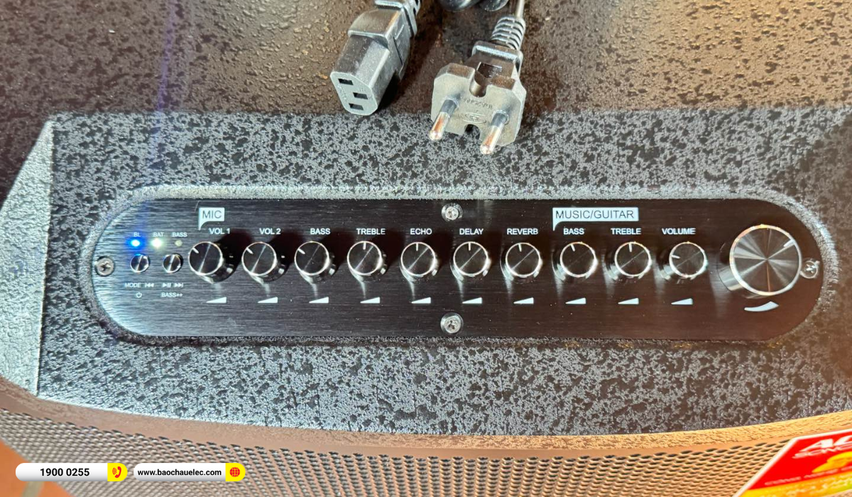 - Bộ loa kéo gồm 2 micro UHF cao cấp, có Echo + Delay + Reverb