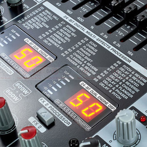 Được trang bị tới 2 bộ xử lý hiệu ứng số 24-bit tích hợp, Behringer PMP6000 mang đến khả năng xử lý âm thanh chuyên nghiệp ngay trong một thiết bị duy nhất. Mixer hỗ trợ 100 hiệu ứng preset sẵn có như reverb, delay, chorus, flanger, pitch shifter và nhiều dạng multi-effect khác. Người dùng có thể dễ dàng áp dụng hiệu ứng cho từng kênh, nhóm tín hiệu hoặc toàn bộ hệ thống main và monitor. Tính năng này giúp nâng tầm chất lượng âm thanh, làm giọng hát thêm dày, nhạc cụ thêm sắc nét và không gian âm nhạc trở nên sống động hơn bao giờ hết.