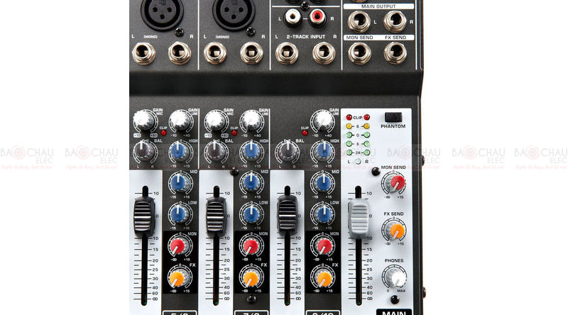 - Đèn LED hiển thị clip (quá tải tín hiệu) cho từng kênh giúp người dùng dễ dàng theo dõi mức tín hiệu đầu vào và tránh hiện tượng vỡ tiếng.