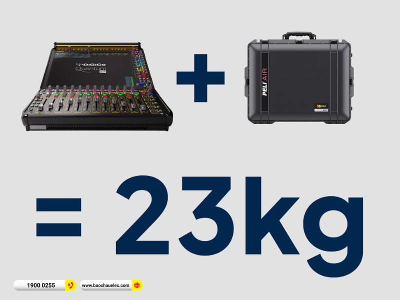 Bàn mixer Digico Quantum 112 được thiết kế để tối ưu cho nhu cầu lưu diễn, lắp đặt cơ động và vận hành linh hoạt. Với kích thước chỉ 440 x 324 x 575 mm và trọng lượng 14.7kg, mixer vẫn tích hợp đầy đủ tính năng xử lý cao cấp như các model lớn hơn trong dòng Quantum. Khi đặt trong vỏ Pelican™ Air 1637, tổng trọng lượng chỉ còn 23kg - đủ tiêu chuẩn hành lý ký gửi của hầu hết hãng hàng không.