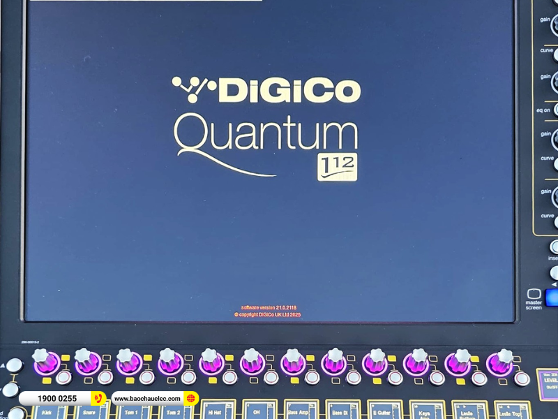 Bên dưới Digico Quantum 112 màn hình chính là hệ thống 12 fader motor cảm ứng dài 100mm, được chọn lựa kỹ lưỡng để mang lại cảm giác trượt mượt mà và độ chính xác cao trong điều khiển. Bên cạnh đó, mixer còn được trang bị 18 màn hình TFT màu riêng biệt trên từng kênh, cung cấp thông tin trực quan, dễ theo dõi và thao tác trong môi trường biểu diễn trực tiếp.