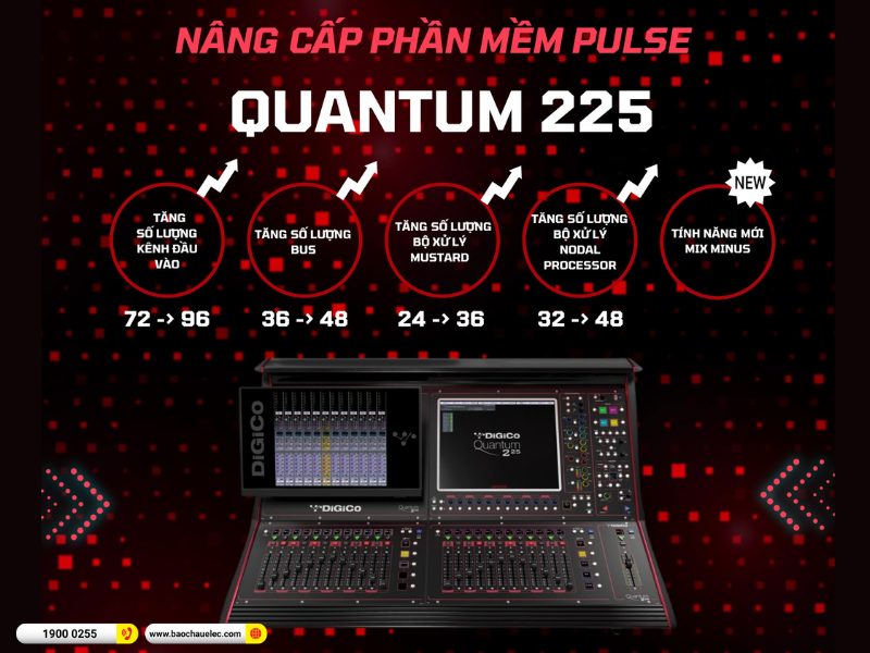 Bàn mixer DiGiCo Quantum 225 Pulse không chỉ là một bàn mixer mà là trung tâm điều khiển âm thanh mạnh mẽ, chính xác và sáng tạo nhất trong phân khúc. Với khả năng xử lý ấn tượng, giao diện trực quan và độ tin cậy tuyệt đối, đây chính là lựa chọn “đáng tiền nhất” cho các kỹ sư âm thanh chuyên nghiệp và nhà tổ chức sự kiện đẳng cấp.