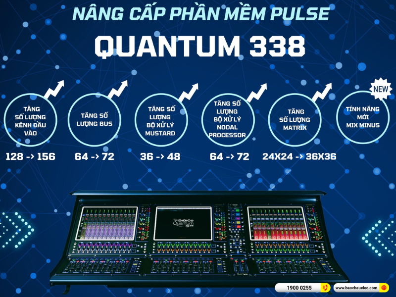 Bàn mixer DiGiCo Quantum 338 Pulse không chỉ là bàn mixer kỹ thuật số cao cấp, mà còn là một trạm điều khiển âm thanh thông minh - nơi hội tụ giữa công nghệ tiên tiến, thiết kế tinh tế và hiệu suất mạnh mẽ. Sản phẩm còn là lựa chọn hàng đầu cho các kỹ sư âm thanh sân khấu, tour diễn, nhà hát và sự kiện quy mô lớn đang tìm kiếm một giải pháp mixing toàn diện và đẳng cấp.