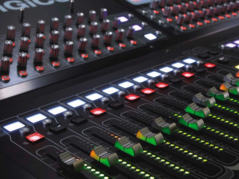 Mỗi fader được trang bị đèn LED đa sắc hiển thị trạng thái hoạt động, hỗ trợ nhận diện nhanh trong môi trường ánh sáng phức tạp như phòng thu hoặc xe truyền hình lưu động.