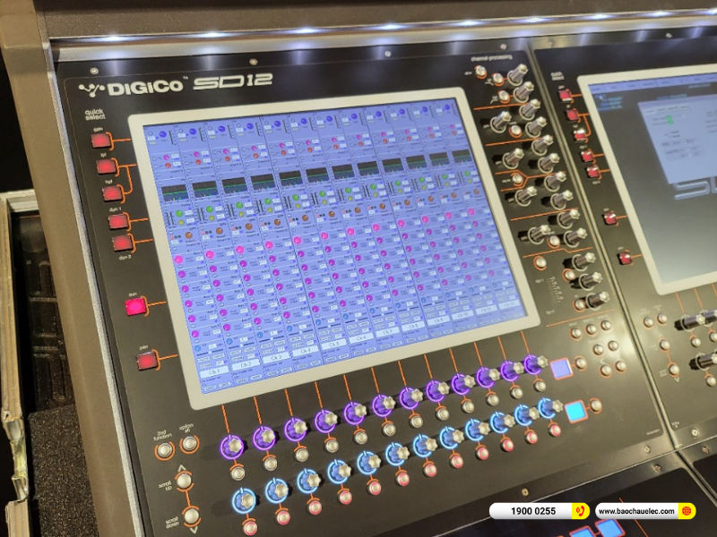 DiGiCo SD12 cung cấp 72 kênh đầu vào và 36 bus phụ trợ (Aux/Sub-group), cho phép xử lý đồng thời nhiều nguồn âm thanh khác nhau – từ micro ca sĩ, nhạc cụ, playback đến tín hiệu truyền hình.