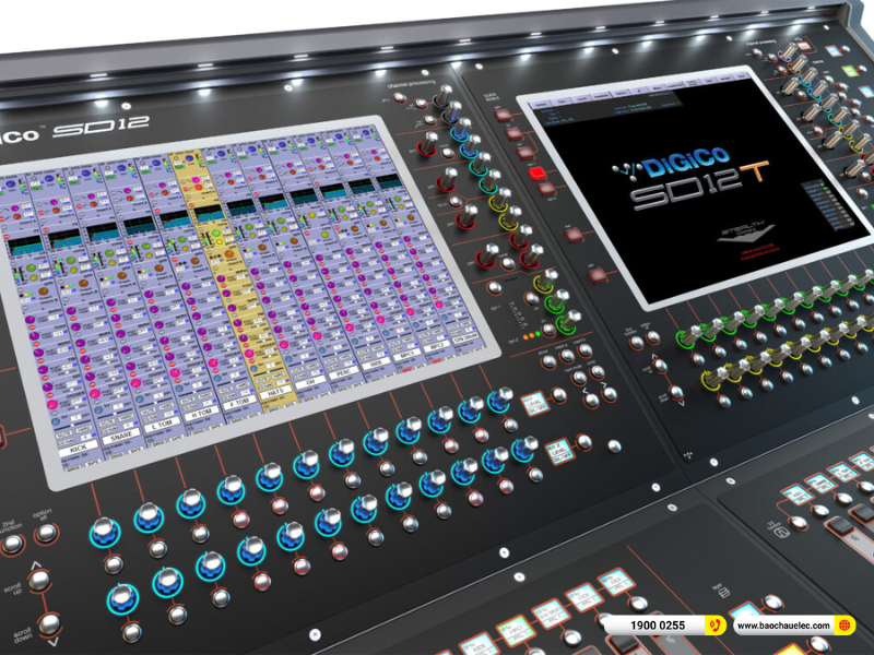 Bàn Mixer DiGiCo SD12T là một trong những bàn mixer kỹ thuật số chuyên nghiệp được ưa chuộng nhất trong phân khúc cao cấp hiện nay. Sở hữu 26 fader motorized cảm ứng, 2 màn hình cảm ứng LCD 15 inch độ phân giải cao cùng nền tảng Stealth Digital Processing và FPGA thế hệ mới, DiGiCo SD12T mang đến hiệu năng xử lý âm thanh mạnh mẽ, linh hoạt và độ ổn định tuyệt đối cho mọi môi trường biểu diễn từ tour lưu diễn, nhà hát, sân khấu, phòng thu, đến đài truyền hình và nhà thờ.