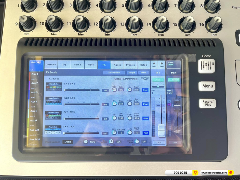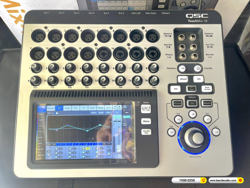 Bàn mixer QSC TouchMix-16 được trang bị màn hình cảm ứng điện dung TFT 7 inch hiện đại, mang đến khả năng thao tác nhanh nhạy và chính xác. Người dùng có thể điều khiển toàn bộ thông số chỉ bằng những cú chạm và xoay đơn giản. Giao diện trực quan, dễ hiểu giúp việc tinh chỉnh EQ, compressor, gate hay hiệu ứng trở nên nhẹ nhàng và thân thiện hơn bao giờ hết. Sự kết hợp hoàn hảo giữa màn hình cảm ứng và núm xoay vật lý cho phép kỹ sư âm thanh linh hoạt thao tác trong mọi tình huống, dù là trên sân khấu hay trong phòng thu.