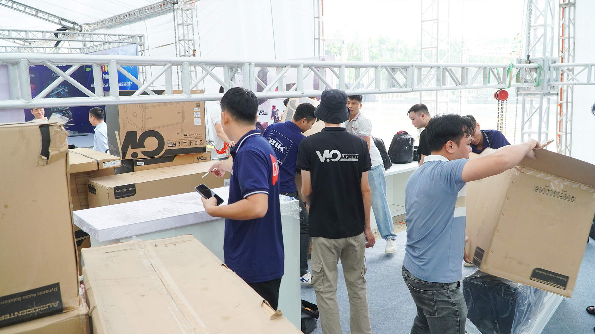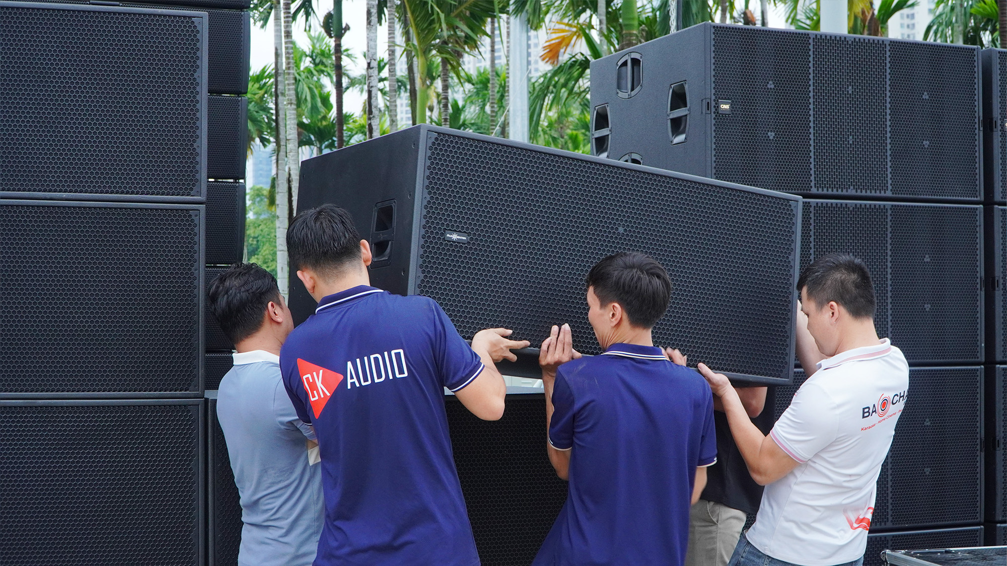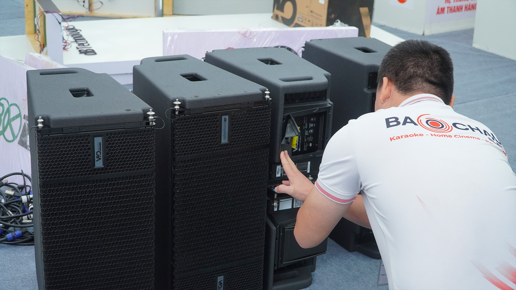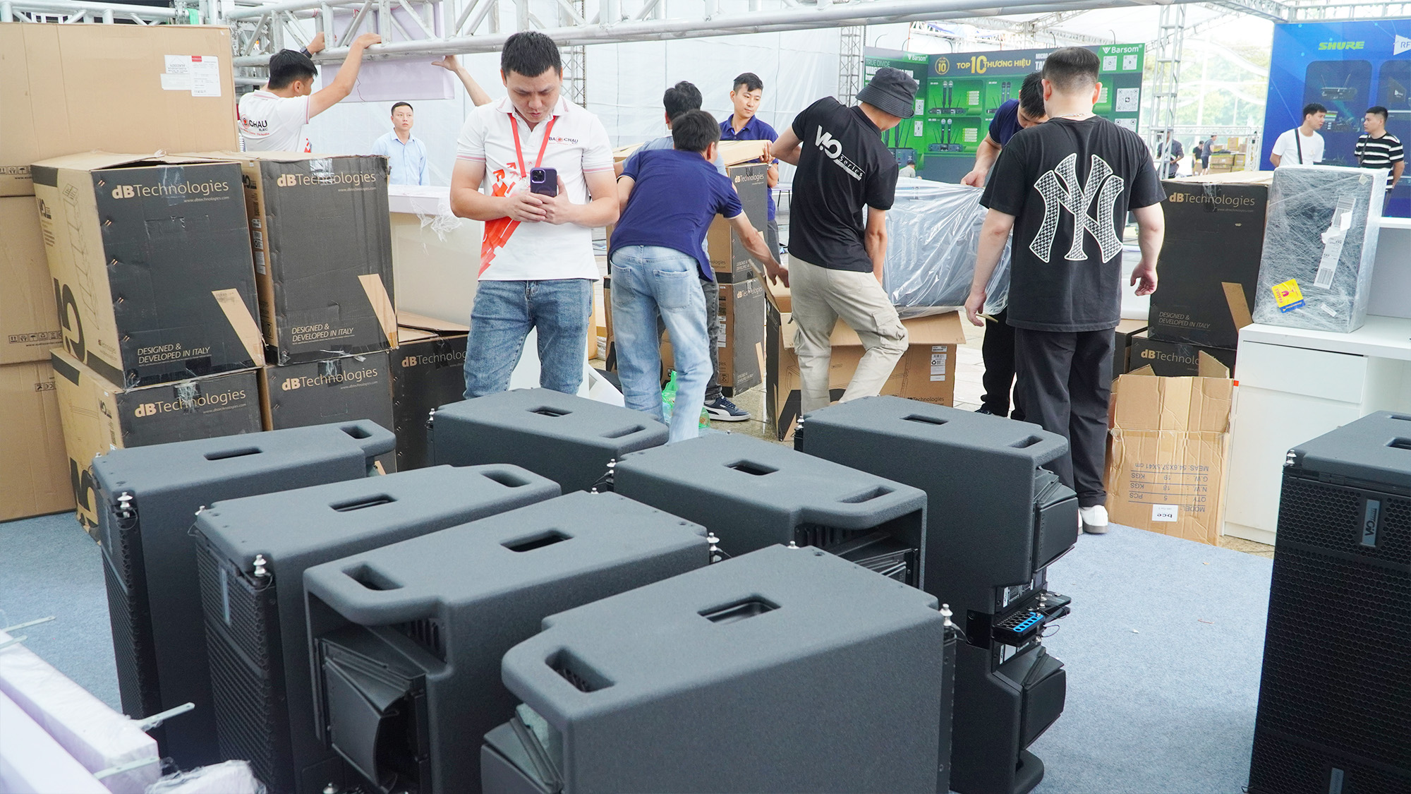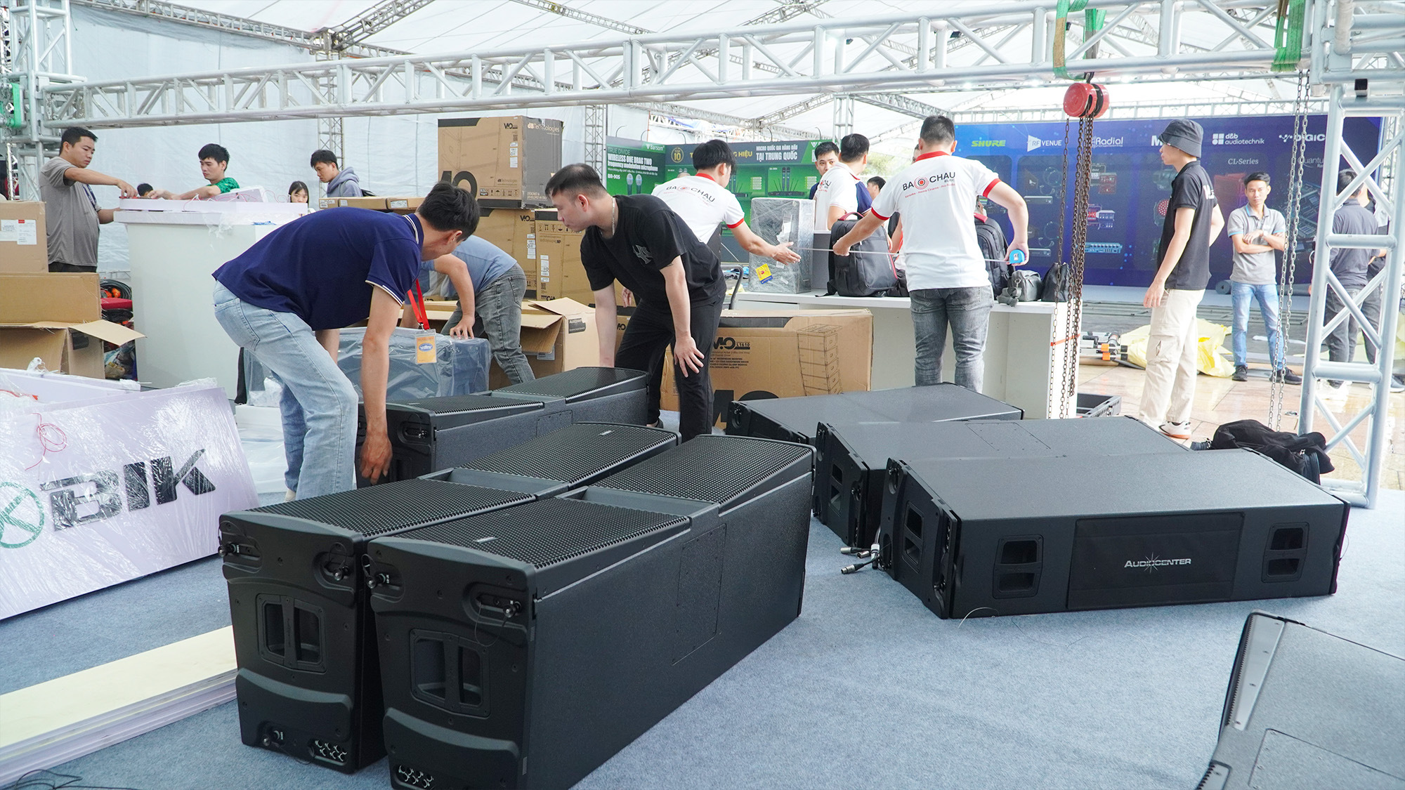Các hệ thống loa full, loa cột và line array hiện đại nhất được tinh chỉnh kỹ lưỡng, sẵn sàng “bùng nổ” trong 3 ngày triển lãm.