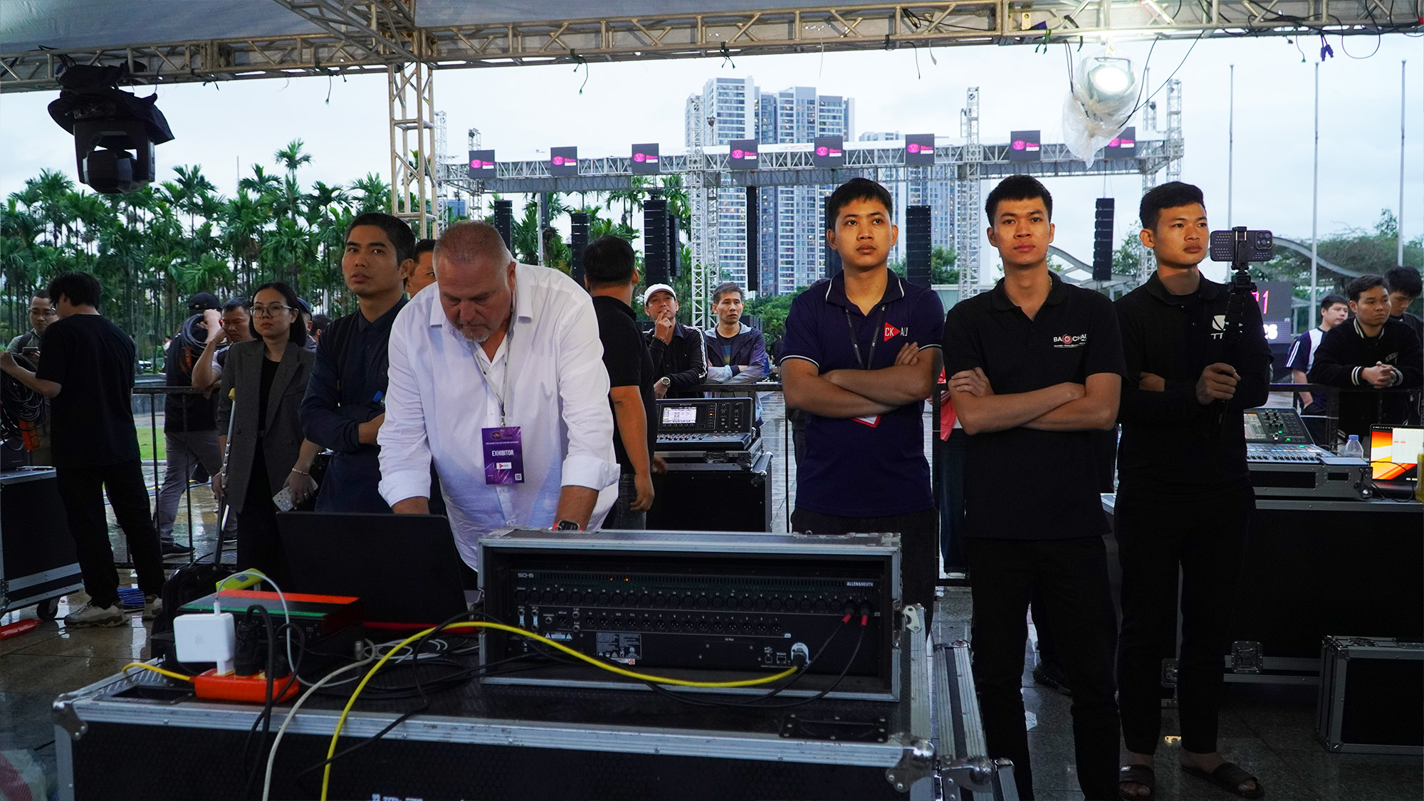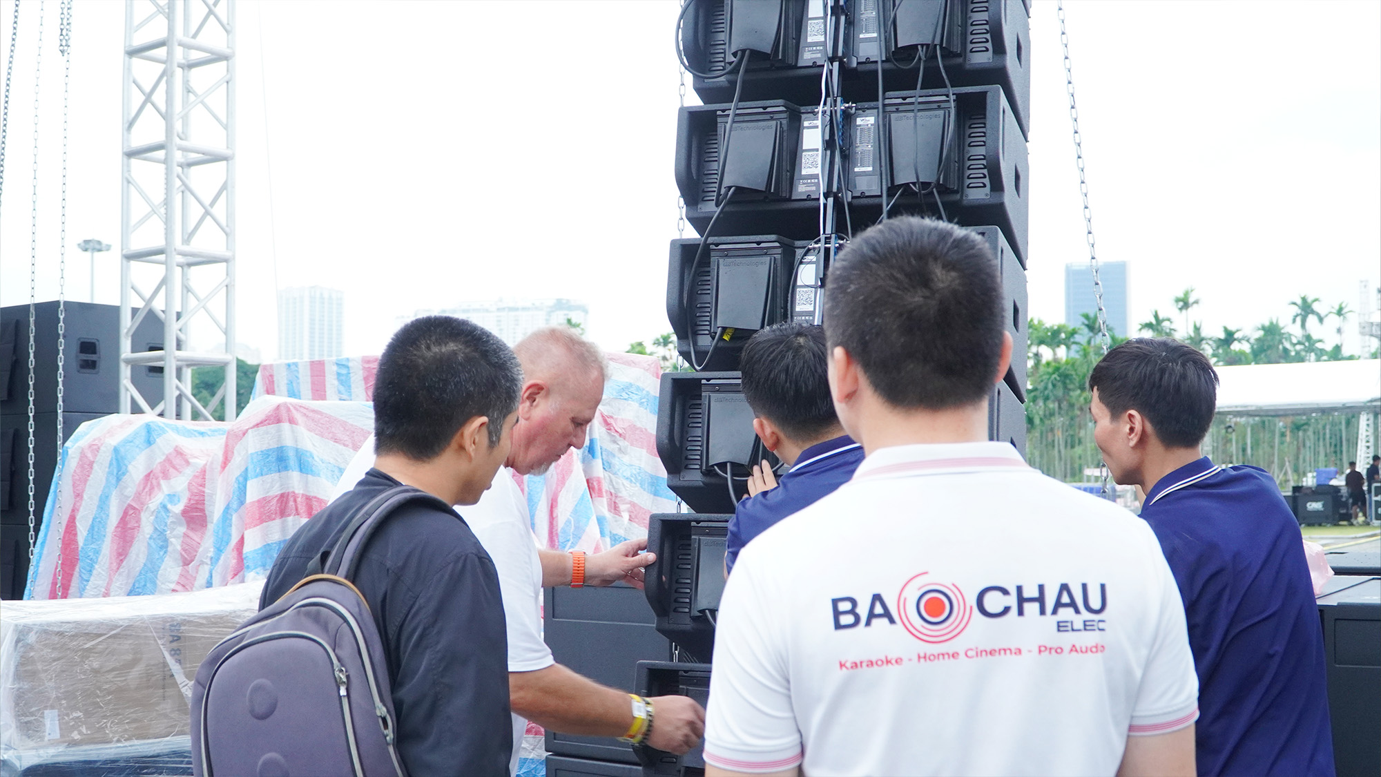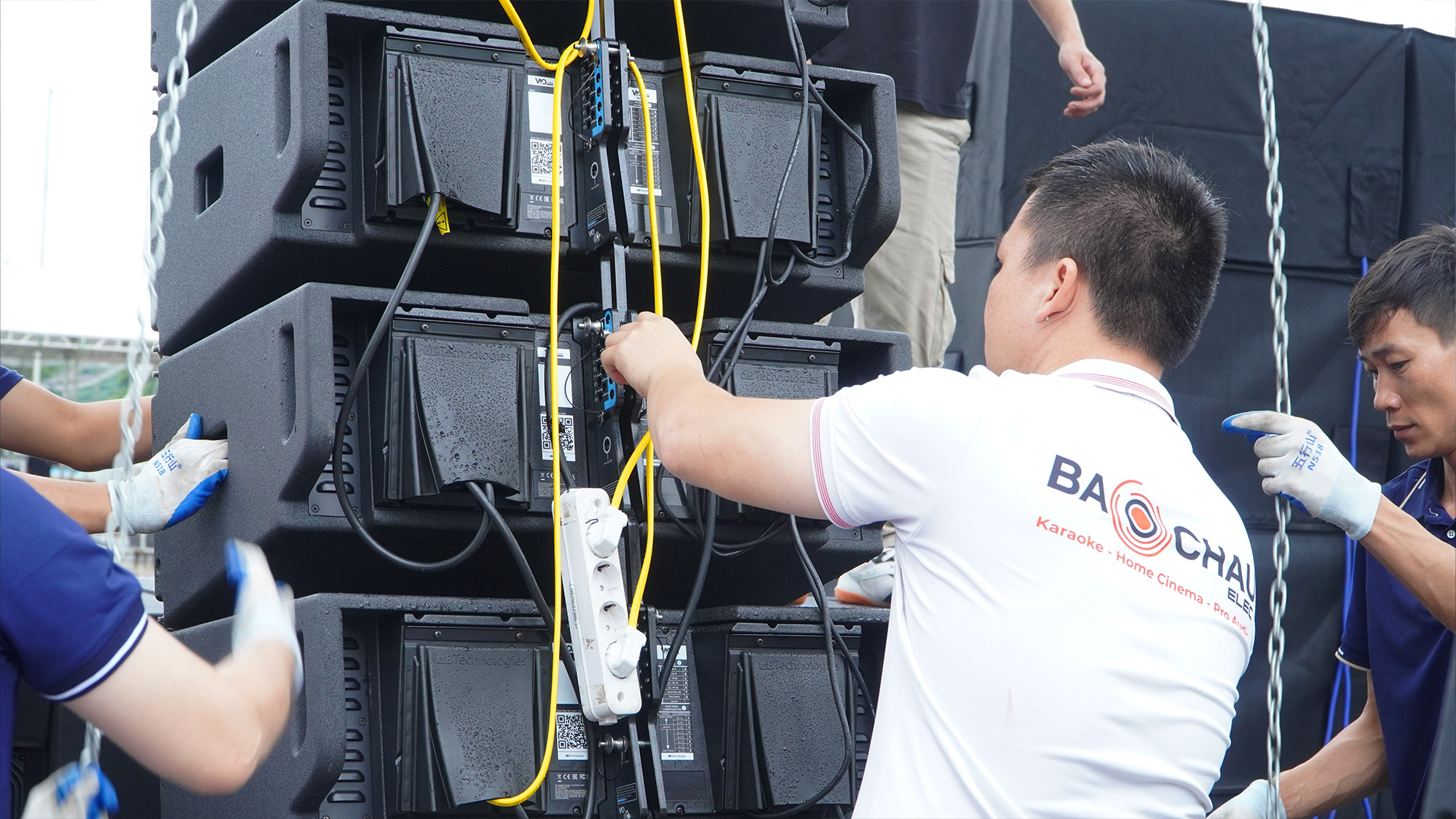 Ngay từ những ngày cuối tháng 10, đội ngũ kỹ thuật viên và chuyên gia của Bảo Châu Elec đã gấp rút hoàn thiện công tác chuẩn bị tại khu vực Line Array D22, đảm bảo mỗi thiết bị, mỗi chi tiết đều đạt chuẩn trình diễn chuyên nghiệp quốc tế.