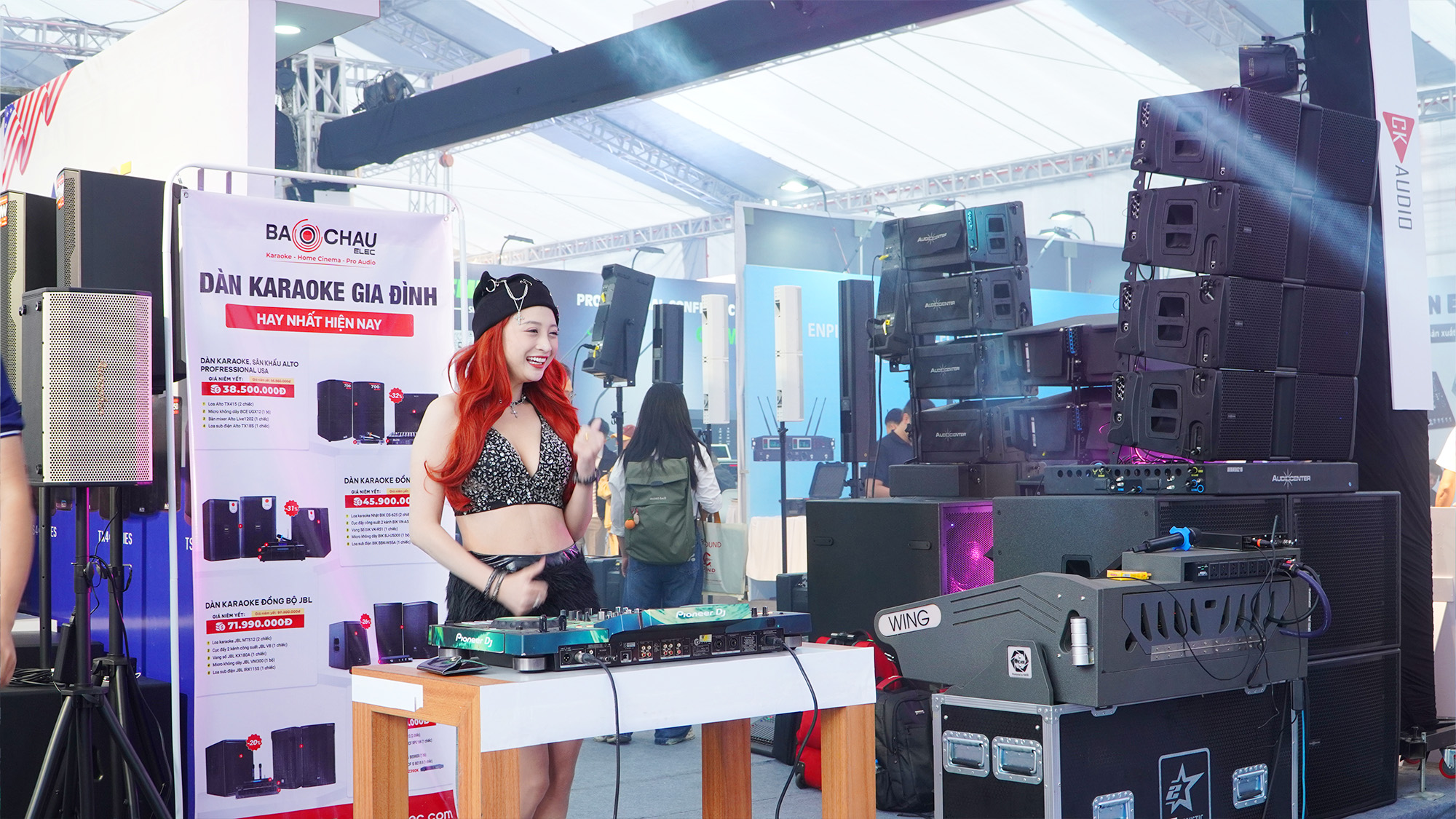 Ngay sau phần nghi thức khai mạc, khu vực gian hàng Bảo Châu Elec - CK Audio nhanh chóng trở thành điểm nhấn của triển lãm.Gian hàng luôn tấp nập khách tham quan, từ các kỹ sư âm thanh chuyên nghiệp, đại lý đến người yêu nhạc, tất cả cùng “cháy” hết mình với những trải nghiệm âm thanh chân thực, bùng nổ cảm xúc.
