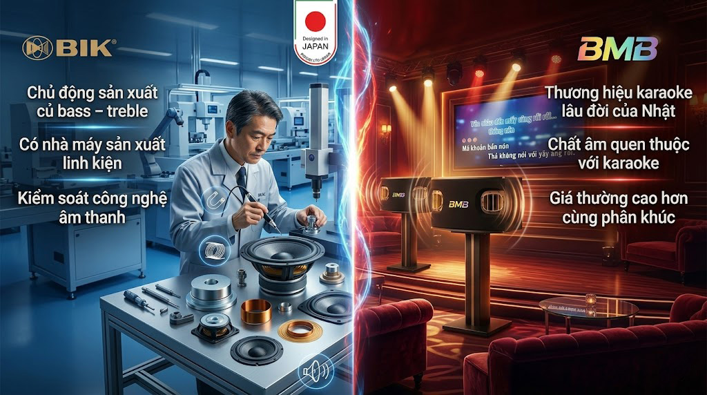 Khoảng hơn 10 năm trước, nếu nhắc đến các dòng loa karaoke bãi Nhật, người chơi âm thanh thường nhắc tới ba thương hiệu quen thuộc: BMB, BIK, JBL. Trong đó, BMB và BIK là hai thương hiệu Nhật Bản được sử dụng rất phổ biến trong các hệ thống karaoke.