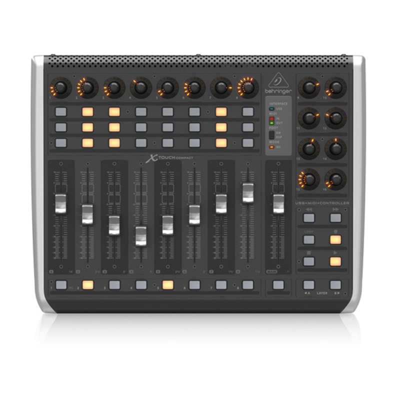 Bộ điều khiển USB/MIDI đa năng bộ điều khiển Behringer X-Touch Compact giúp bạn kiểm soát chính xác các phần mềm sản xuất âm thanh, các thiết bị âm nhạc, hiệu ứng và ánh sáng yêu thích của mình với sự linh hoạt từ 9 cần gạt có động cơ hoàn toàn tự động và cảm ứng, 16 núm quay với vòng LED - và 39 nút được chiếu sáng.