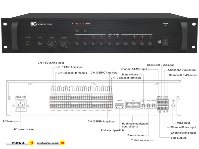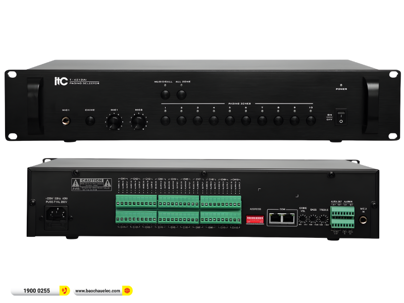 Bộ điều khiển phân 10 vùng với bộ chọn loa ITC T-6212(A) là giải pháp đa năng ổn định và dễ mở rộng, đáp ứng hiệu quả nhu cầu quản lý nhạc, thông báo và báo động trong các hệ thống âm thanh công cộng. Với thiết kế chuẩn rack, khả năng phân vùng mạnh mẽ và cơ chế ưu tiên an toàn, sản phẩm là lựa chọn đáng tin cậy cho mọi công trình hệ thống âm thanh thông báo PA hiện đại.