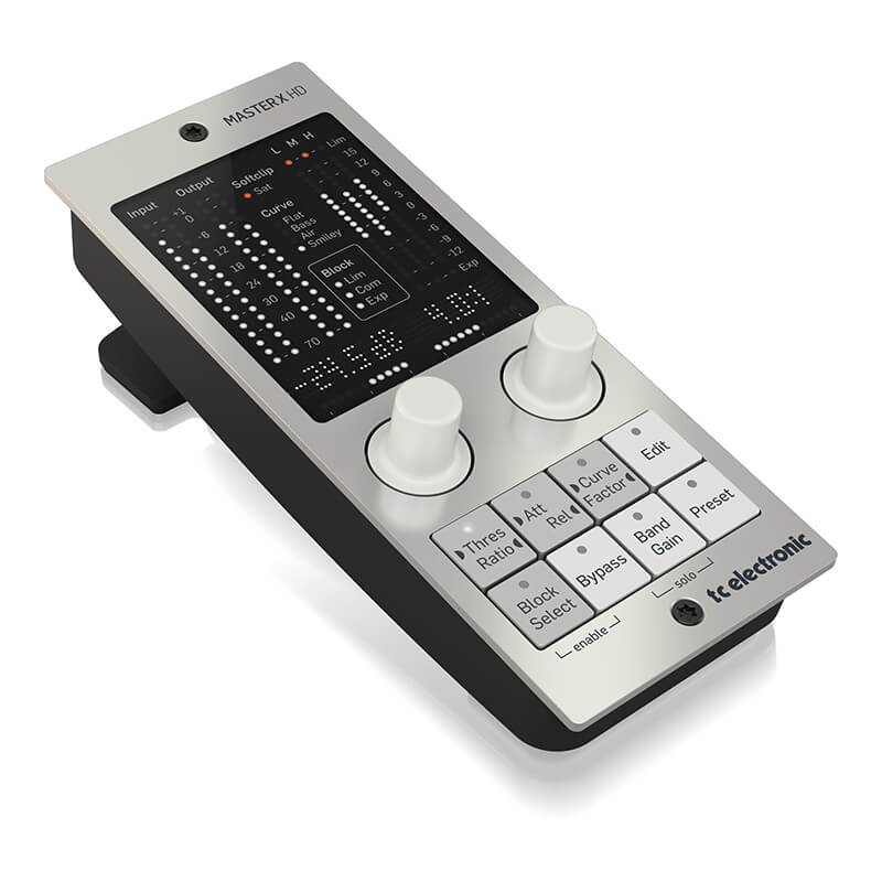 Phụ kiện phần cứng tùy chọn cho Master X HD cung cấp phản hồi hình ảnh để giám sát tín hiệu và động học chính xác trực tiếp trên giao diện phần cứng. Các điều khiển thao tác cũng cho phép bạn điều chỉnh tất cả các tham số xác định âm thanh cho các thuật toán mở rộng, nén và giới hạn và nhiều hơn thế nữa.