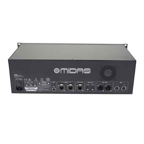 Stage Box Midas DL 32 có thể được xếp tầng thông qua các cổng AES50 tích hợp, cung cấp kết nối cho tối đa 64 đầu vào mic / line, 32 đầu ra cân bằng và cổng ULTRANET cho phép thiết bị kết nối trực tiếp với loa Turbosound iQ Series và Hệ thống Giám sát Cá nhân Behringer POWERPLAY P-16 cung cấp tối đa 48 bộ trộn màn hình riêng lẻ. Thiết bị tích hợp 2 ổ cắm ADAT quang và AES-3 (AES / EBU) để kết nối với các thiết bị bên ngoài, một cổng USB thuận tiện để cập nhật hệ thống qua PC của bạn - cộng với MIDI I / O cho hệ thống chiếu sáng và điều khiển mô-đun âm thanh.