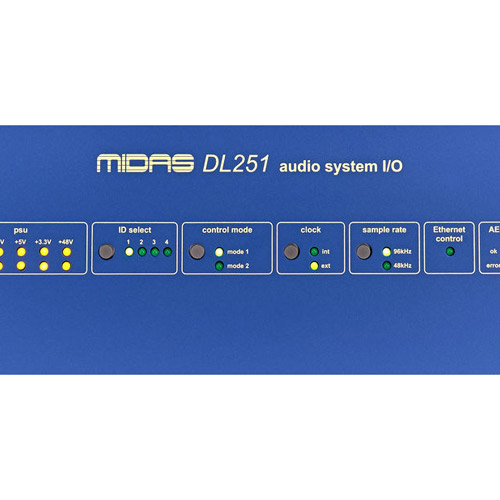 Hoạt động 96kHz hoặc 48kHz DL251 hỗ trợ nhiều tốc độ lấy mẫu trên các kết nối AES50. 96kHz để sử dụng với dòng Midas Pro và 48kHz để sử dụng cho dòng Midas M32.