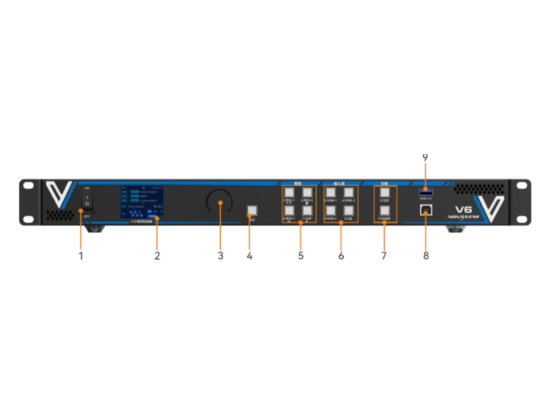NovaStar V6 được thiết kế với hệ thống cổng kết nối đa dạng, đáp ứng tốt cả nhu cầu trình chiếu truyền thống lẫn các hệ thống LED hiện đại yêu cầu tính linh hoạt cao trong thi công và mở rộng.