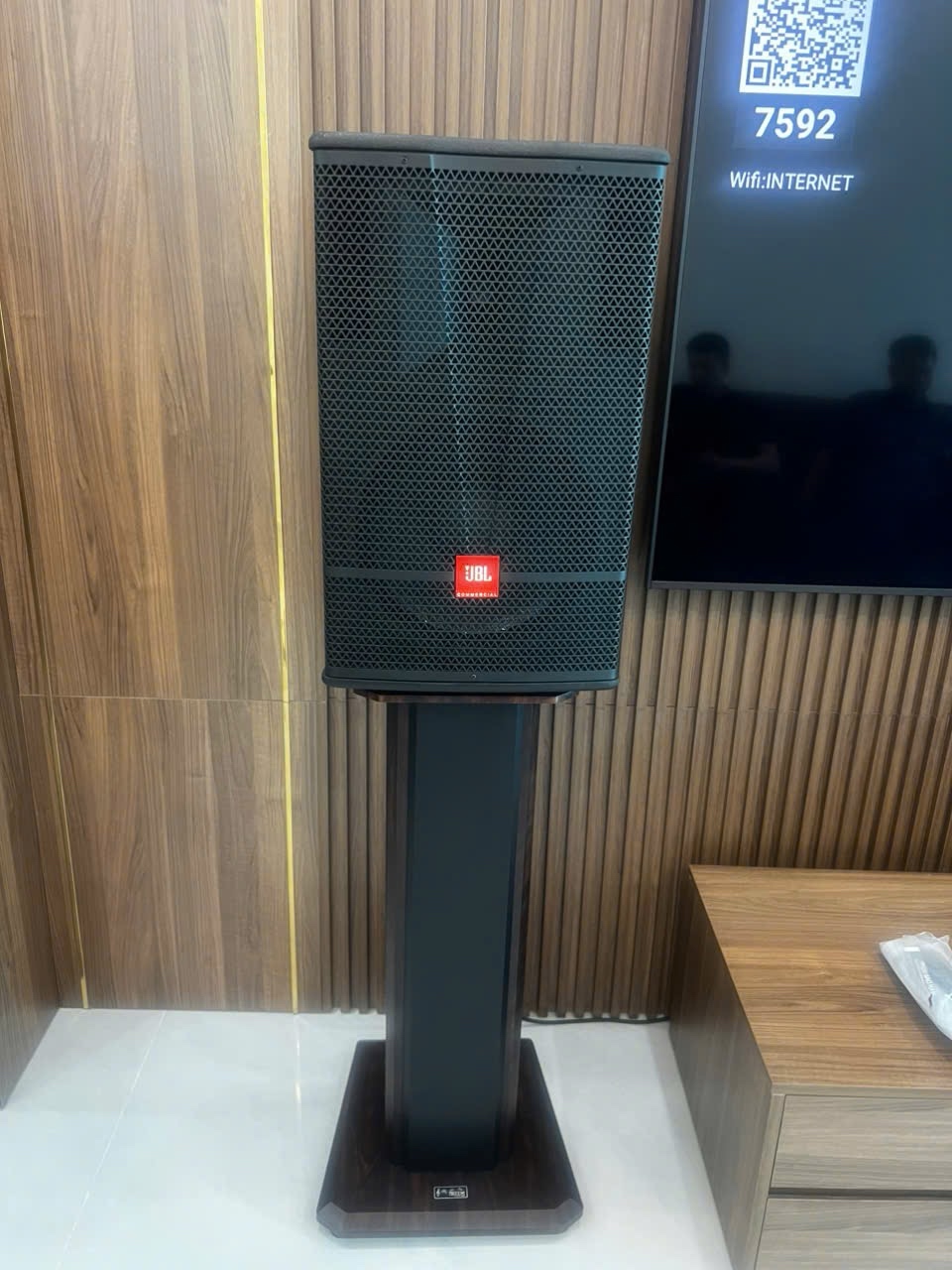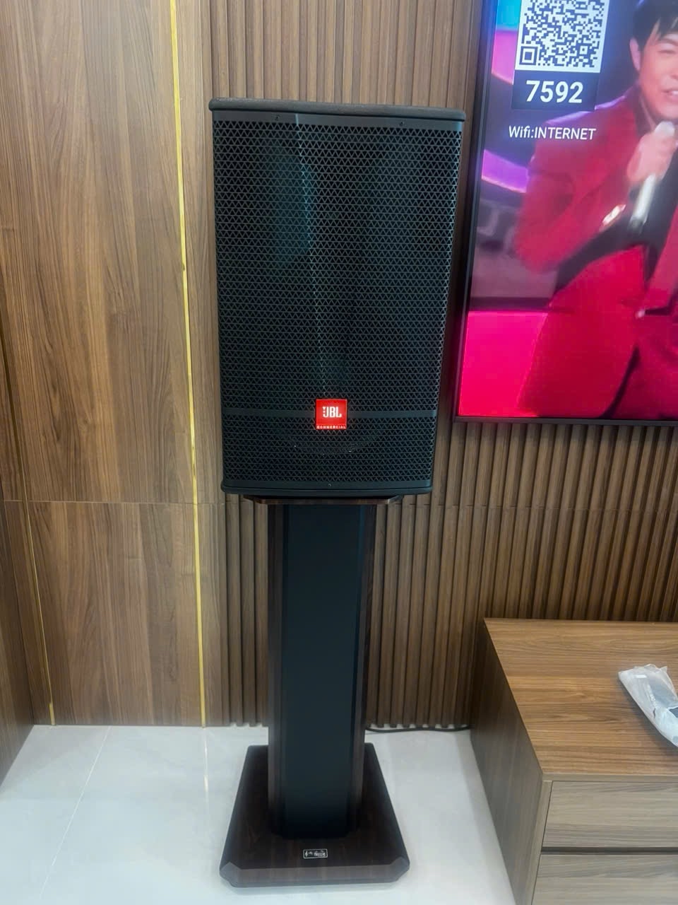 - Thẩm mỹ và gọn gàng: Thiết kế sang trọng, phù hợp cho không gian phòng khách, phòng karaoke gia đình hoặc phòng thu