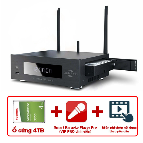 Combo karaoke + xem phim Dune HD Pro Vision 4K Solo (All in one) – HDD 4TB gồm: