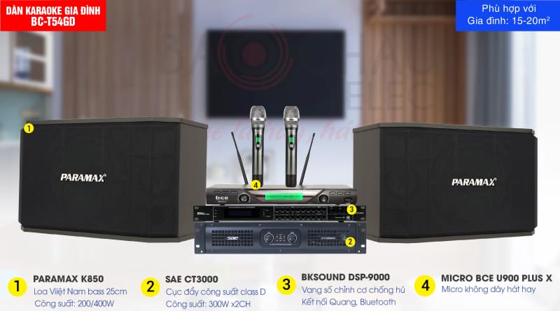 Cấu hình của Dàn karaoke BC-T54GD bao gồm
