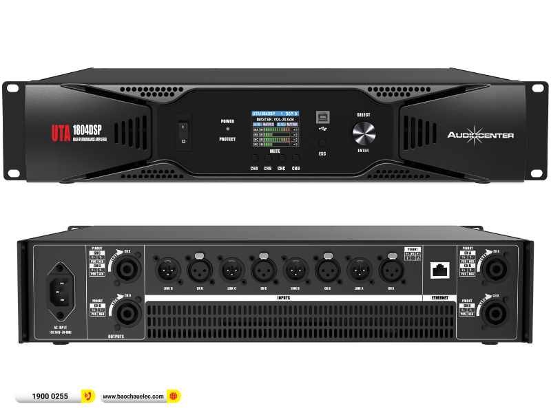 Cục đẩy 4 kênh Audiocenter UTA1804DSP không chỉ là cục đẩy công suất 4 kênh mạnh mẽ mà còn là trung tâm quản lý âm thanh DSP chuyên nghiệp. Đến ngay hệ thống showroom Bảo Châu Elec trên toàn quốc để trải nghiệm trực tiếp chất lượng sản phẩm. Hoặc gọi ngay số hotline 1900 0255 để nhận thêm thông tin chi tiết!