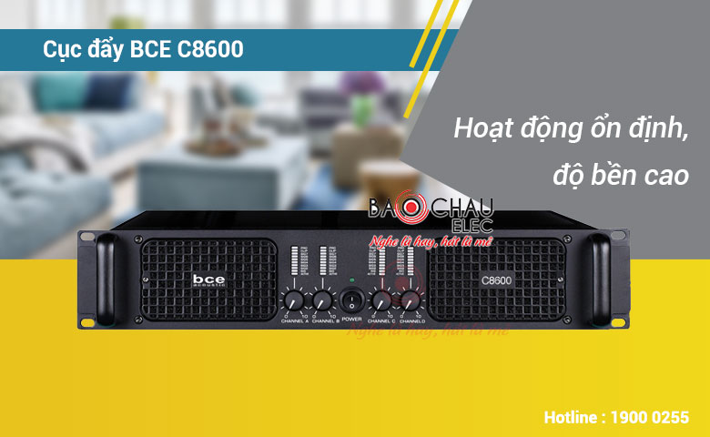 - BCE C8600 là cục đẩy 4 kênh có thể kéo tới 4 loa công suất 900Watts nên dễ dàng phục vụ cho những hệ thống âm thanh lớn, chuyên nghiệp như tại hội trường, sân khấu, bar, club hay những phòng karaoke VIP,...