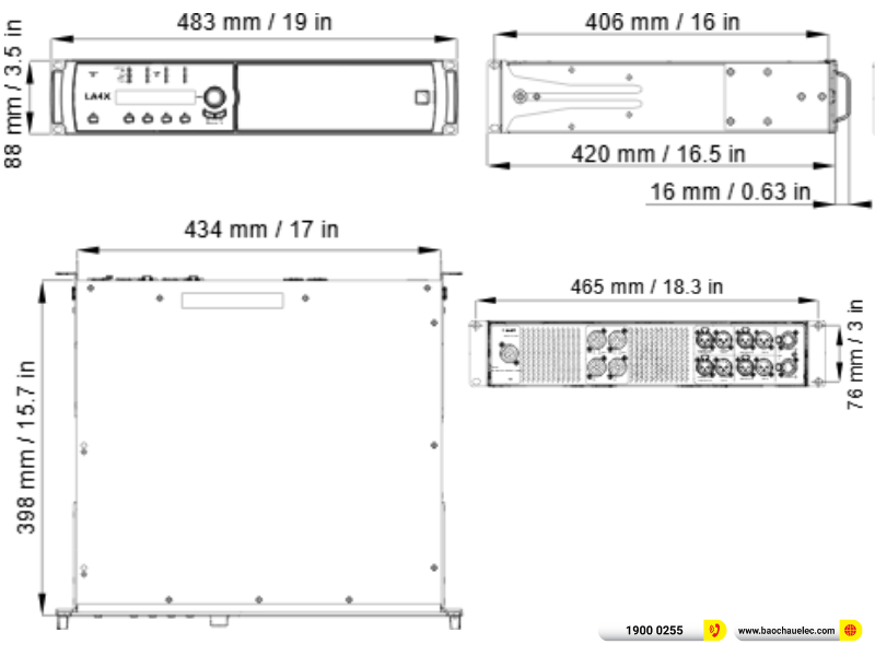 Cục đẩy công suất 4 kênh L-Acoustics LA4X sở hữu chassis thép không gỉ chắc chắn, kích thước tiêu chuẩn 2U, dễ dàng lắp đặt trong rack. Trọng lượng chỉ 11.3kg giúp việc vận chuyển và thi công trở nên thuận tiện hơn. Mặt trước được trang bị màn hình LCD kết hợp hệ thống LED hiển thị rõ ràng các thông số hoạt động, mang lại sự thuận tiện trong quá trình sử dụng và giám sát.