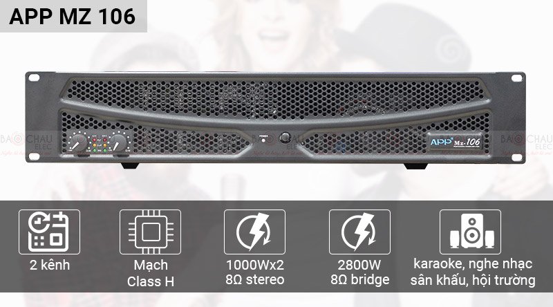 Cục đẩy công suất APP MZ-106 nổi bật với tính năng dễ dàng phối ghép các dòng vang số hiện nay, loa karaoke hay cả đầu karaoke.