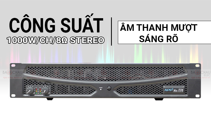 Cục đẩy công suất APP MZ-106 được thiết kế với 2 kênh riêng biệt cho mức công suất 1000W/ CH (8Ω Stereo), 1400W/ CH (4Ω Stereo) và 2800W (8Ω Bridged), một mức công suất mạnh mẽ với khả năng trình diễn tuyệt vời hoàn toàn có thể kéo các cặp loa full công suất lớn hoặc loa sub trên thị trường hiện nay.
