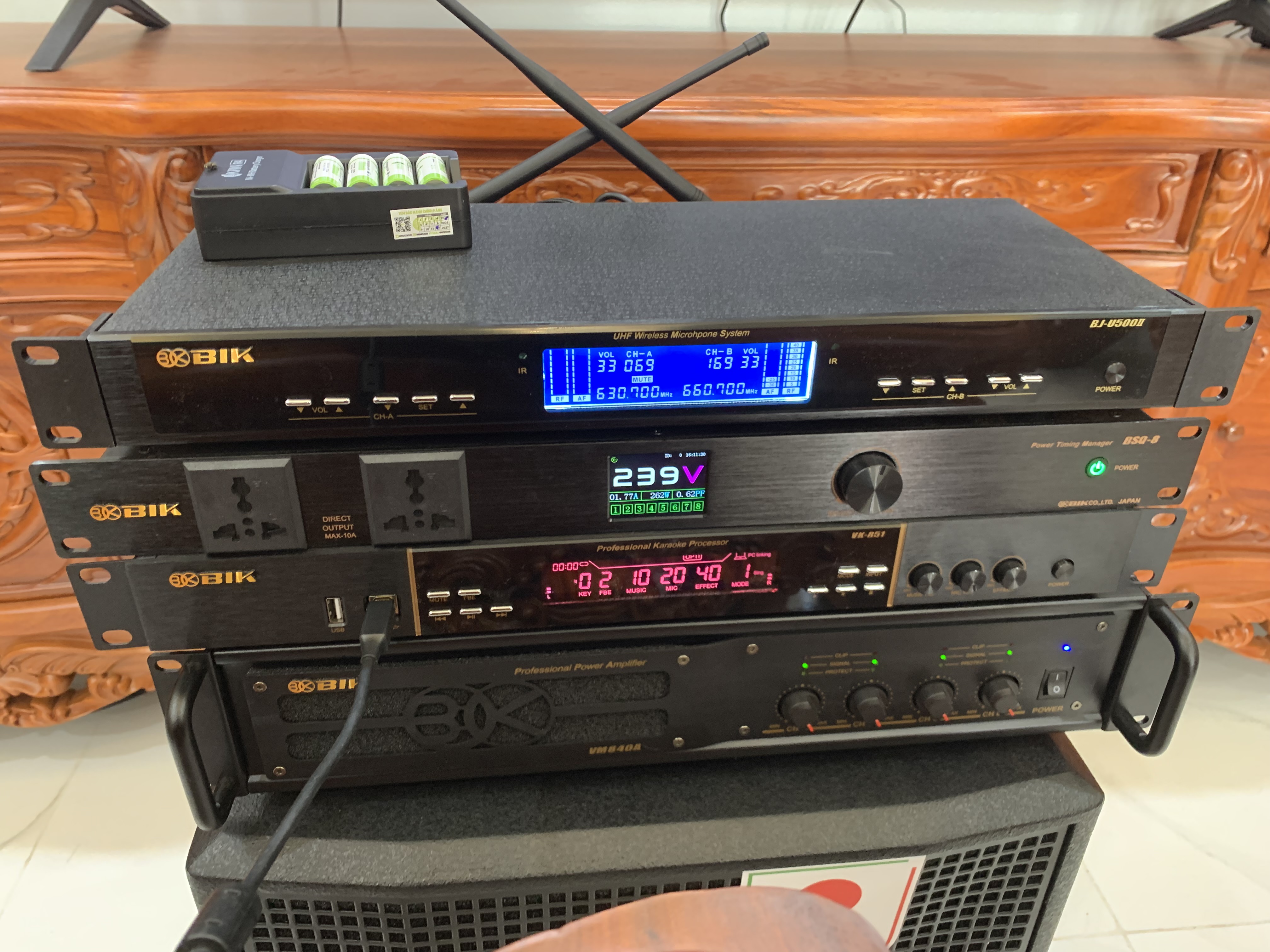 Dàn karaoke lắp đặt cho nhà anh Ngọc sử dụng Cục đẩy công suất BIK VM 840A