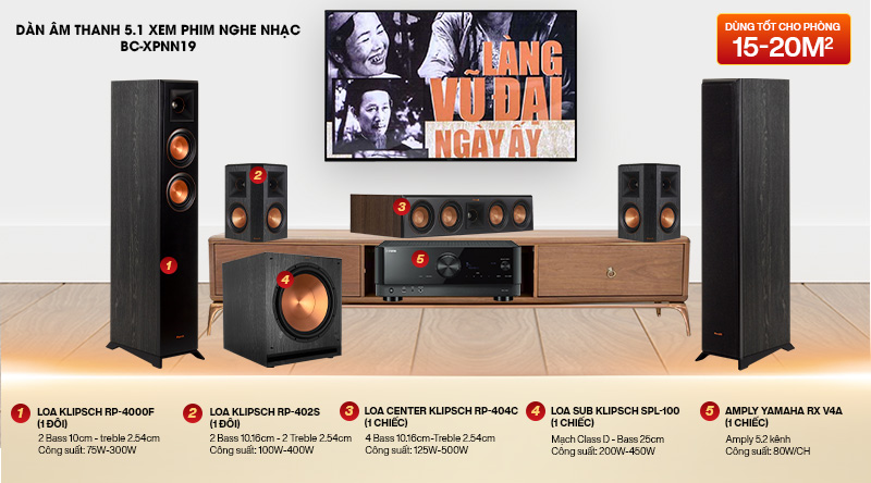 Cấu hình của dàn âm thanh 5.1 xem phim nghe nhạc BC-XPNN19 bao gồm