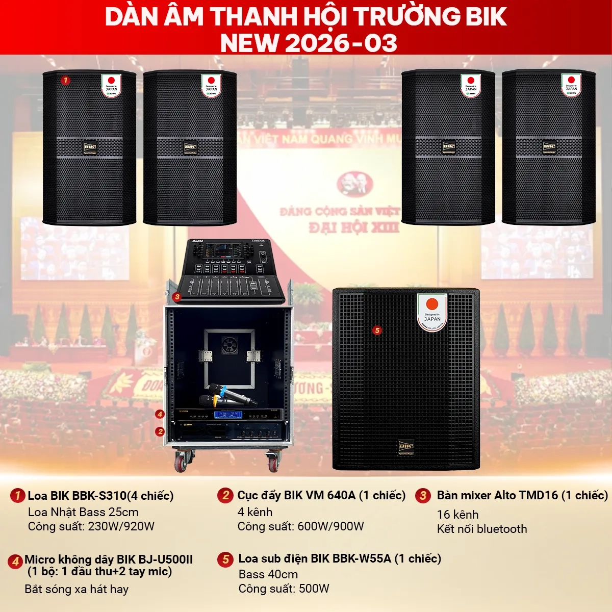 Cấu hình Dàn âm thanh hội trường BIK New 2026-03 gồm: