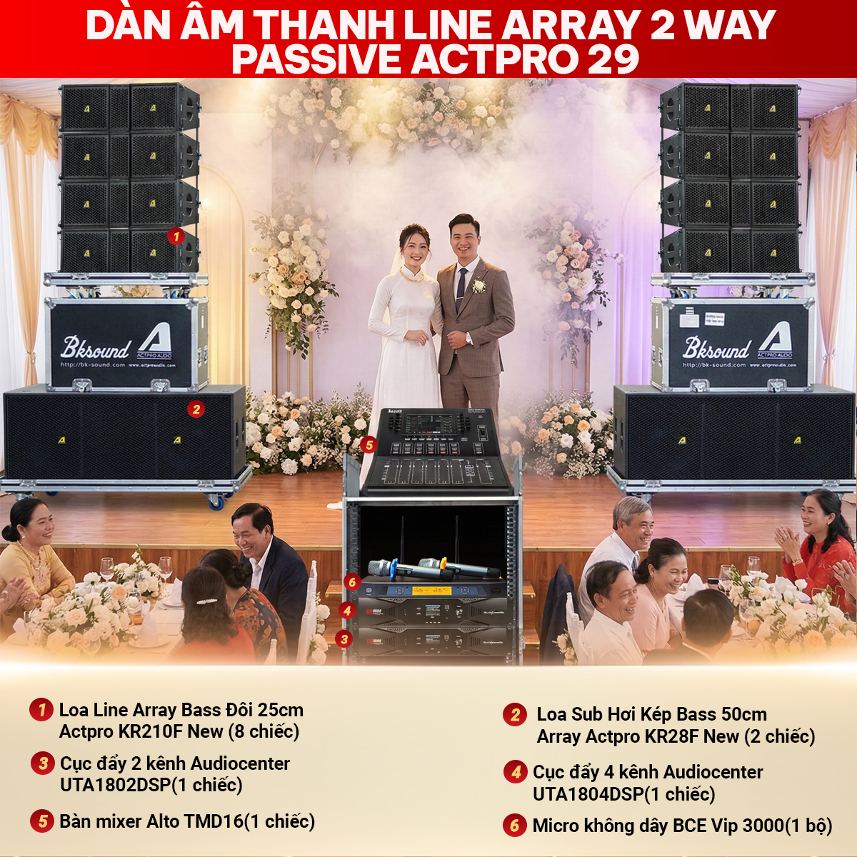 Dàn âm thanh Line Array Passive Actpro 29 chính là giải pháp "vàng" cho những không gian sự kiện đòi hỏi sự hoành tráng và chất lượng âm thanh trung thực tuyệt đối. Với công suất cực đại mạnh mẽ cùng khả năng xử lý âm thanh tinh tế từ các thiết bị hàng đầu, hệ thống này không chỉ nâng tầm đẳng cấp cho sân khấu mà còn đảm bảo sự vận hành bền bỉ, an toàn cho mọi chương trình.