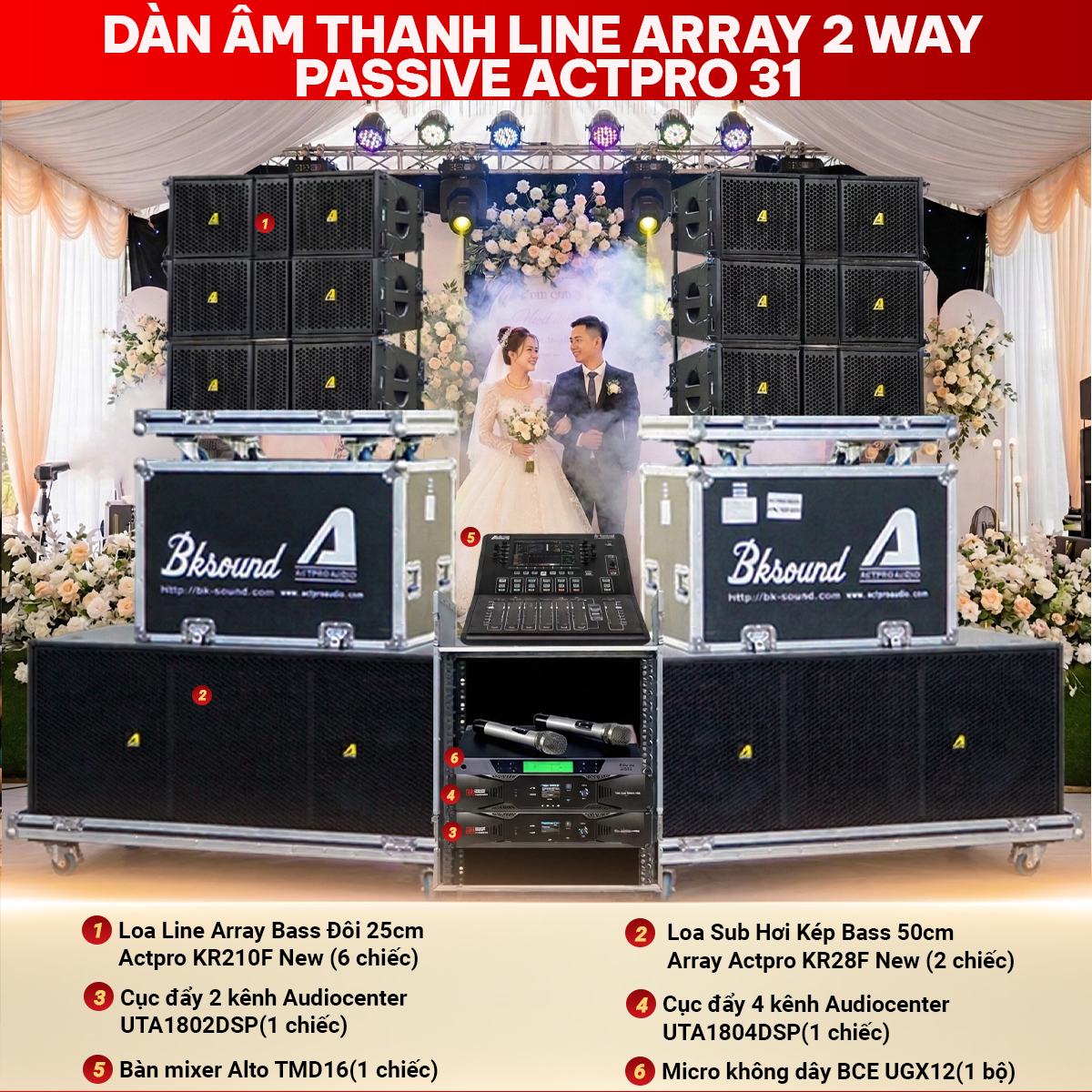 Dàn âm thanh Line Array Passive Actpro 31 chính là giải pháp "vàng" cho những không gian sự kiện đòi hỏi sự hoành tráng và chất lượng âm thanh trung thực tuyệt đối. Với công suất cực đại mạnh mẽ cùng khả năng xử lý âm thanh tinh tế từ các thiết bị hàng đầu, hệ thống này không chỉ nâng tầm đẳng cấp cho sân khấu mà còn đảm bảo sự vận hành bền bỉ, an toàn cho mọi chương trình.