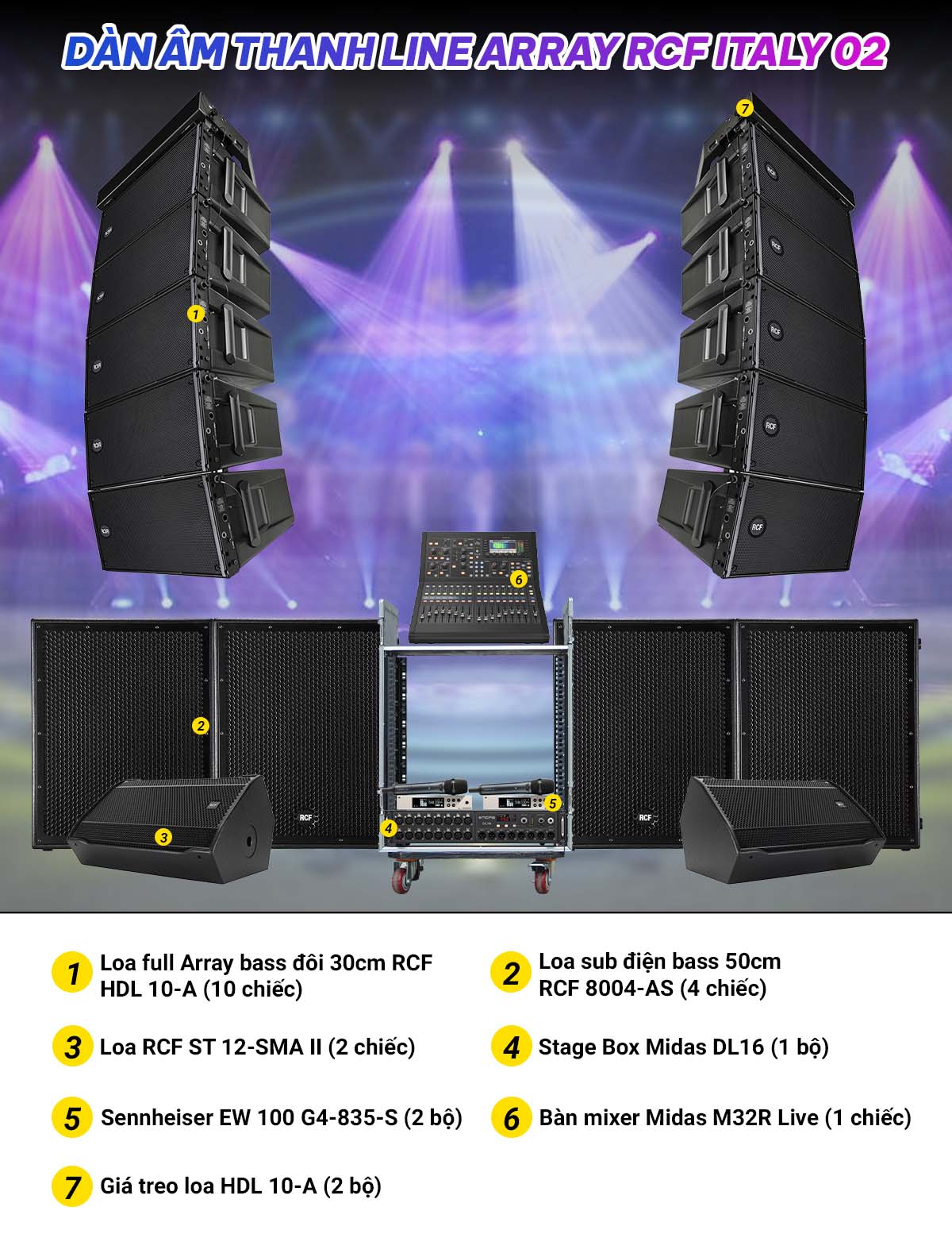 Cấu hình Dàn âm thanh Line Array RCF ITALY 02 bao gồm: