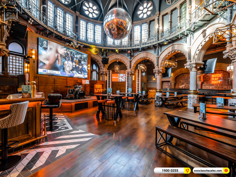 Việc sử dụng giá treo chuyên dụng giúp sắp xếp loa thành cụm đồng bộ, đảm bảo hướng âm lan tỏa chuẩn xác, từ đó tối ưu chất lượng âm thanh phủ đều khắp không gian.