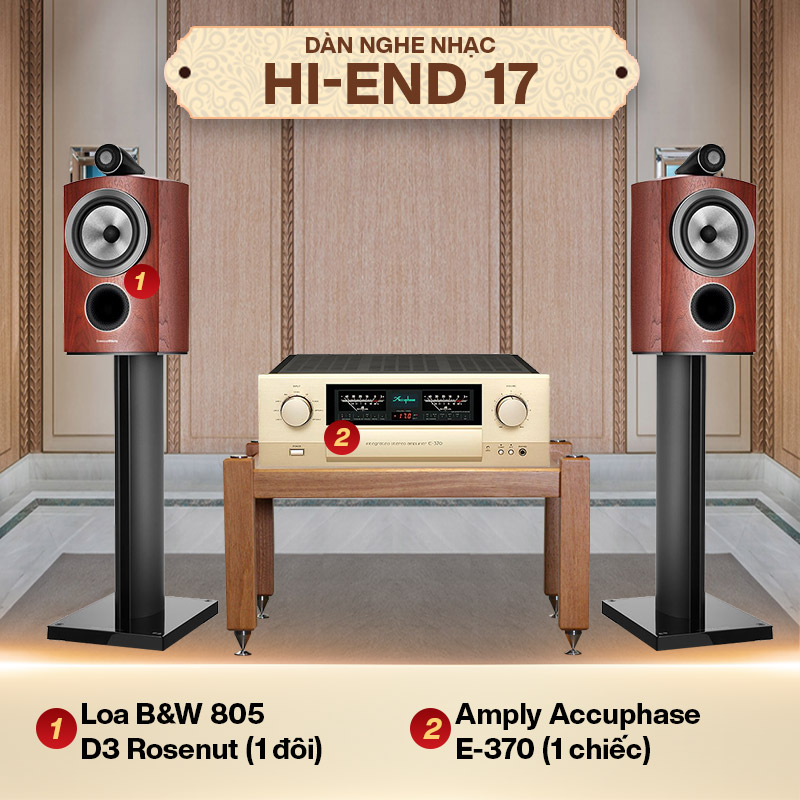 Nhằm đáp ứng nhu cầu của khách hàng về các dàn nhạc, Bảo Châu đã nghiên cứu và phối ghép ra dàn nghe nhạc 17. Dàn nghe nhạc hi-end 17 bao gồm: Loa B&W 805 D3 Rosenut và amply Accuphase E- 370 đều là những sản phẩm đến từ các thương hiệu nổi tiếng thế giới, chắc chắn sẽ không làm người chơi nhạc thất vọng.