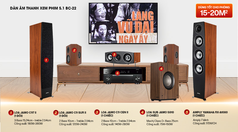 Cấu hình của dàn âm thanh xem phim 5.1 BC-22 bao gồm các thiết bị: