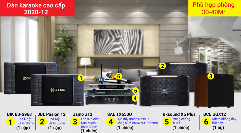 Bảo Châu Elec giới thiệu đến quý khách hàng dàn karaoke cao cấp 2020-12 được phối ghép đúng chuẩn, chuyên dụng cho nhu cầu ca hát, nghe nhạc trong không gian diện tích khoảng 20 – 40m2.
